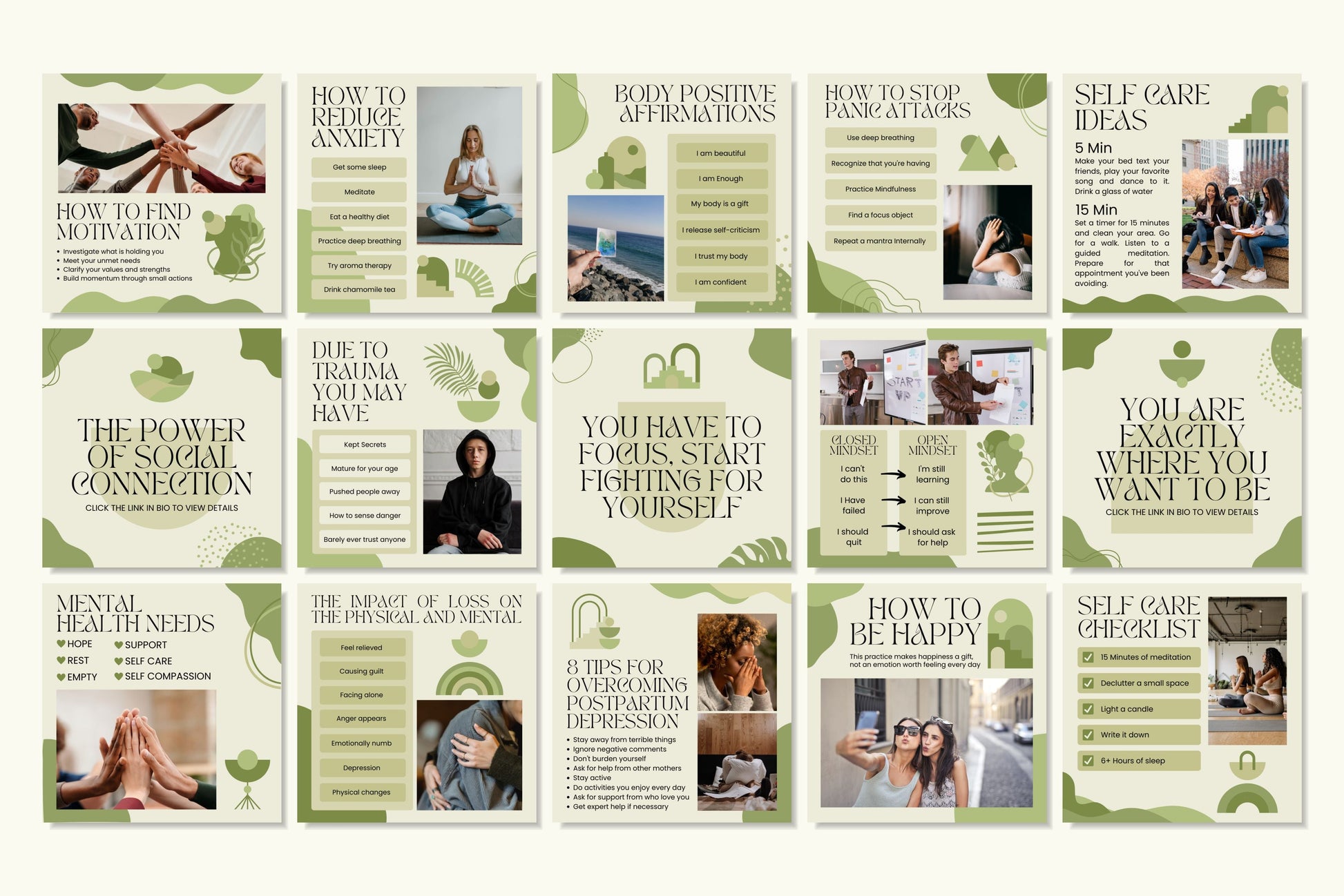 Introducing our mindful 120+ Mental Health Instagram Templates β Canva Bundle Vol. 2, designed for therapists, life coaches, counselors, and mental wellness brands who want to inspire and educate with beautiful, meaningful content. π§ πΏπ²
