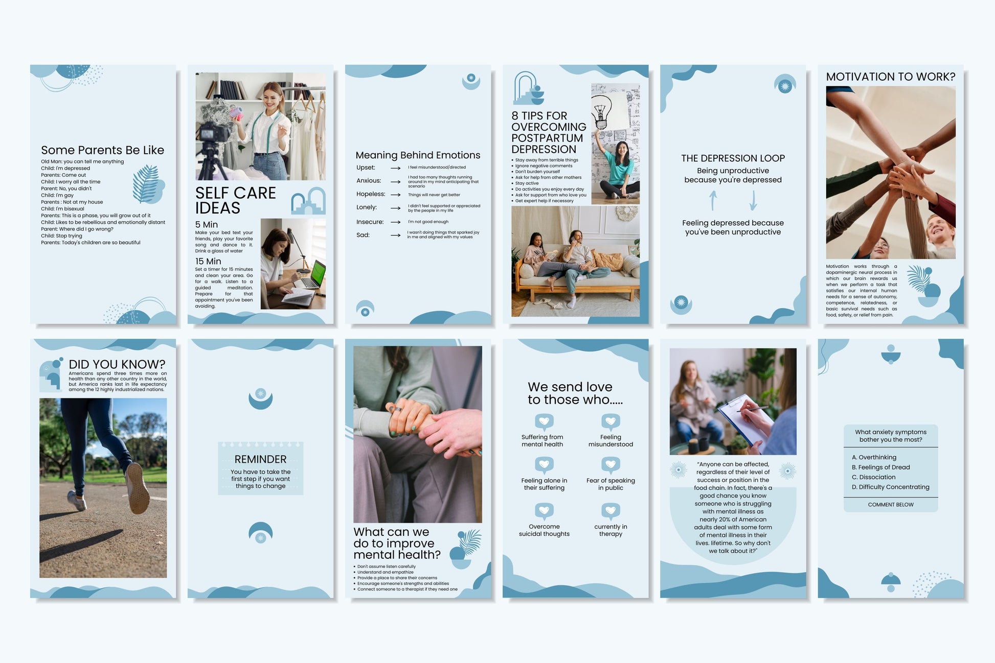 Introducing our mindful 120+ Mental Health Instagram Templates โ Canva Bundle Vol. 3, designed for therapists, life coaches, counselors, and mental wellness brands who want to inspire and educate with beautiful, meaningful content. ๐ง ๐ฟ๐ฒ