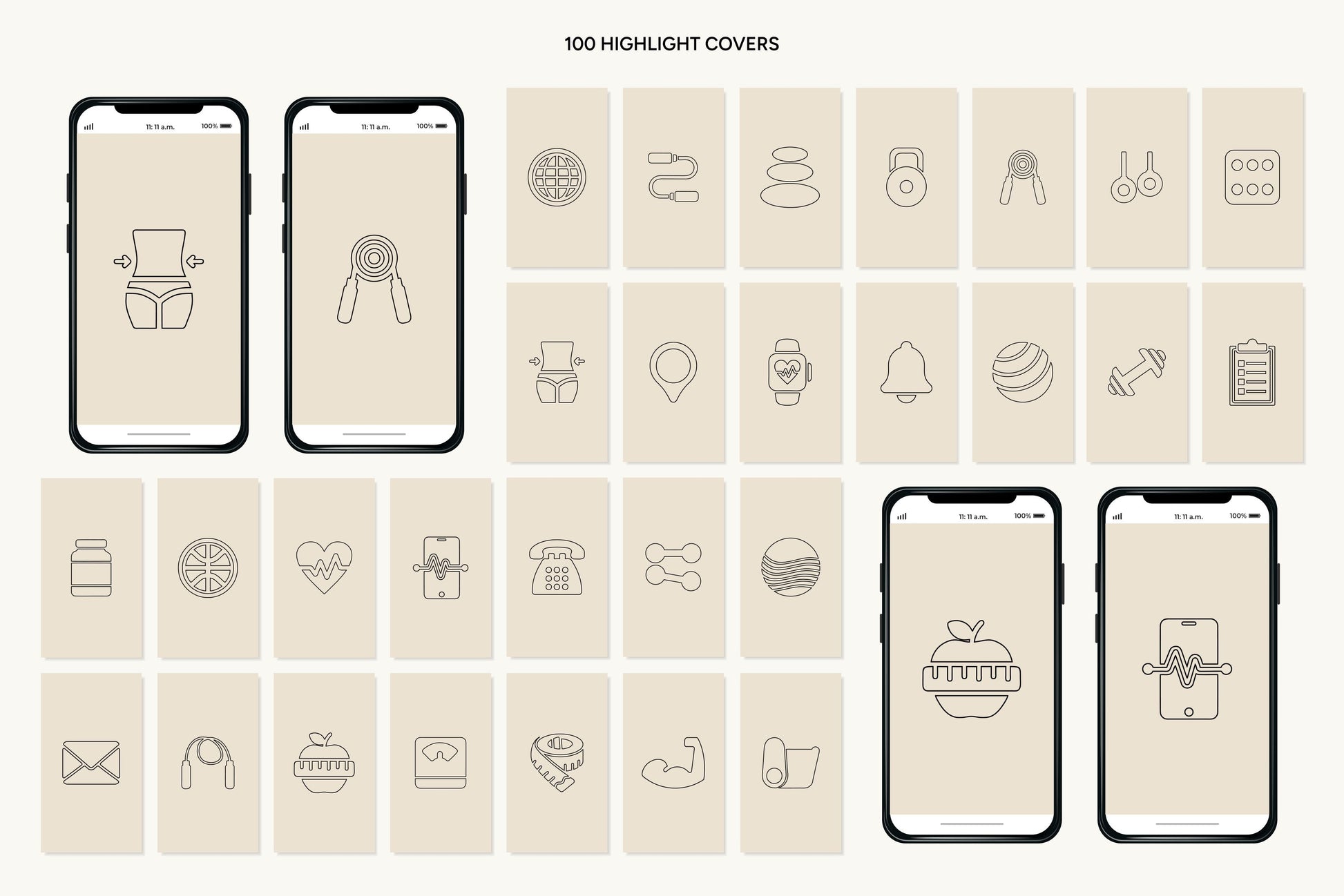 - π 100 Highlight Covers: Wellness-aligned icon set