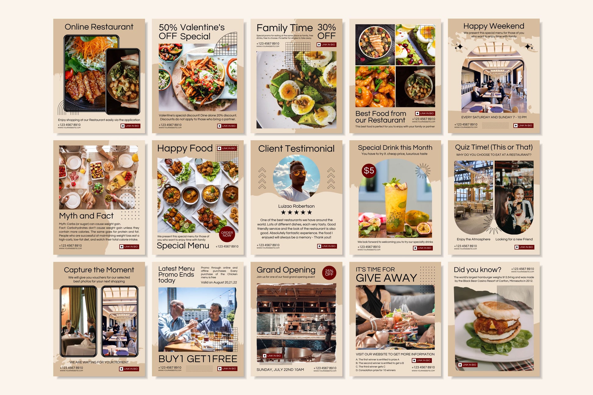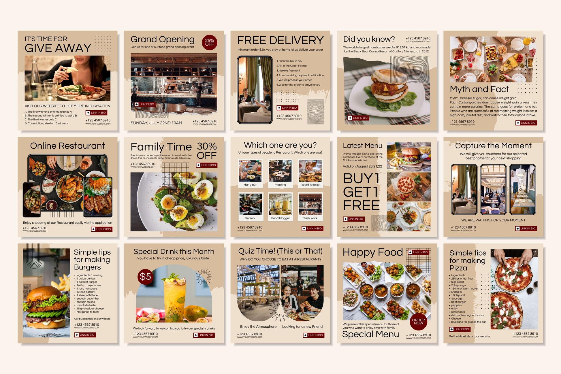 - 🍽️ 30 Square Templates (1080×1080): Menu posts, dish highlights