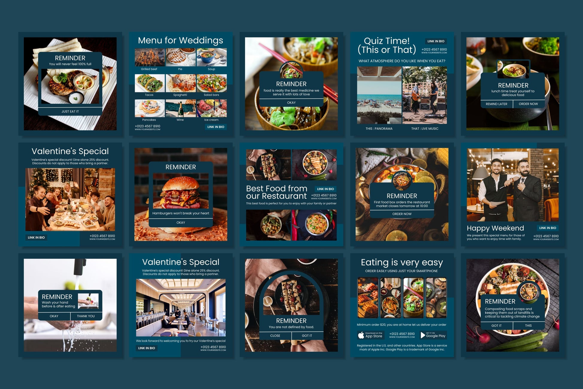 - 🍽️ 30 Square Templates (1080×1080): Menu posts, dish highlights