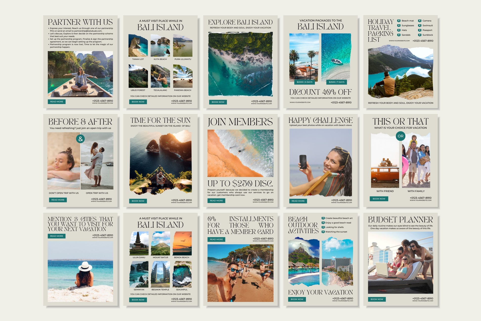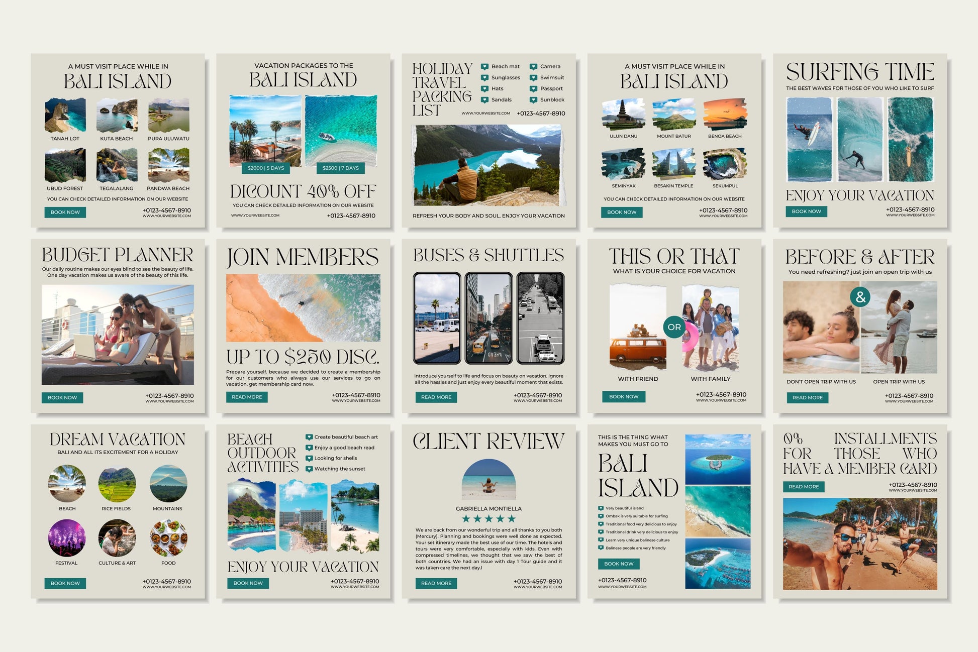 - βοΈ 30 Square Templates (1080Γ1080): Destination posts, tips
