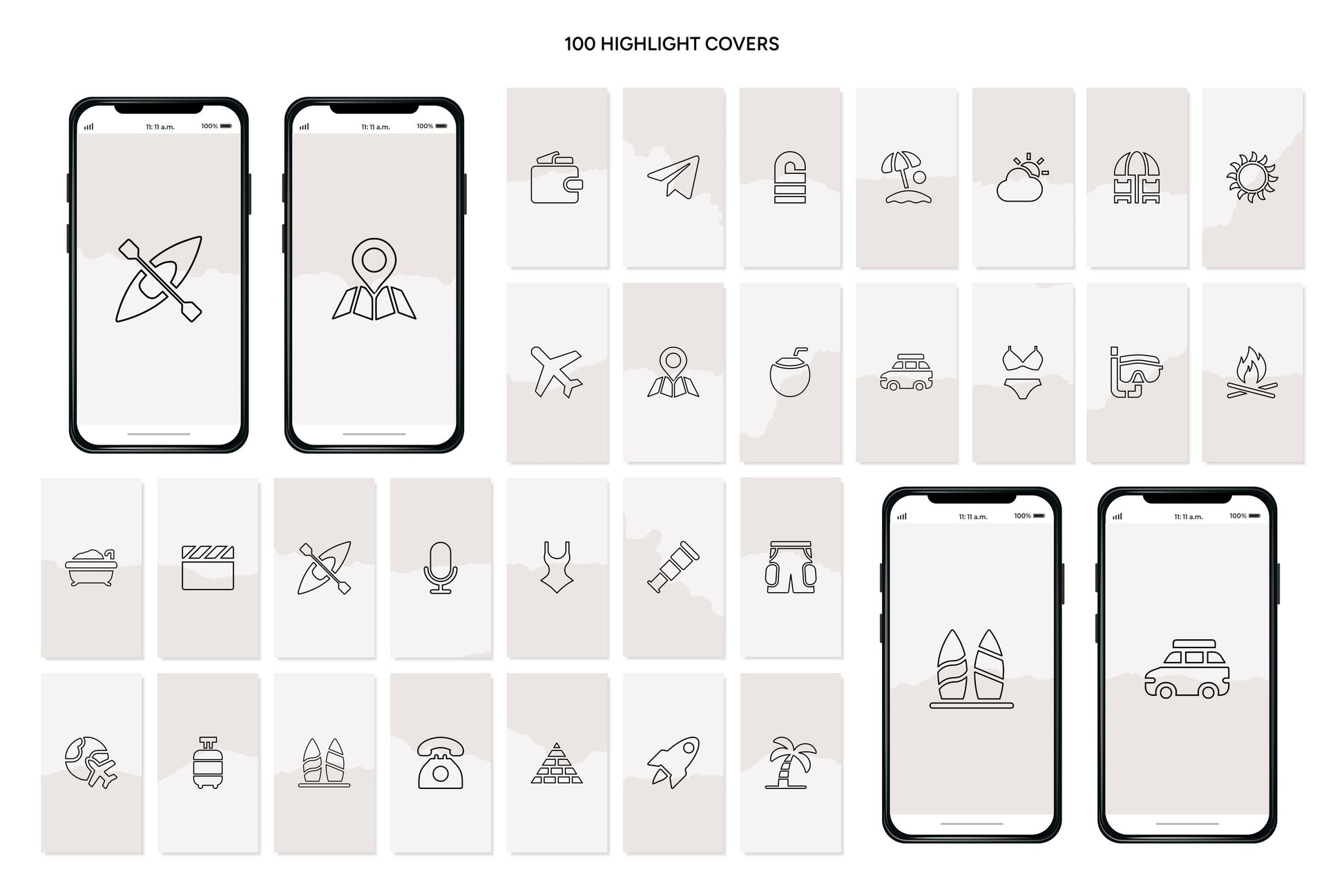 - π 100 Highlight Covers: Curated icons for food, cities, reels