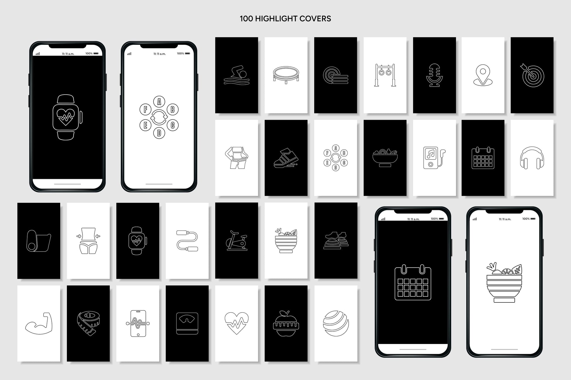- π 100 Highlight Covers: Wellness icons for profile polish